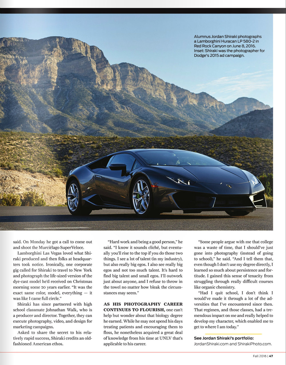 Not many people know my real story. The story of me at the age of 13 taking my very first picture with a vintage 1960's SLR. Or the story of my pivotal decision to abandon a career in dentistry to instead pursue ShirakiPhoto. I recently told these stories for the very first time in a UNLV publication featuring some of their prominent alumni.